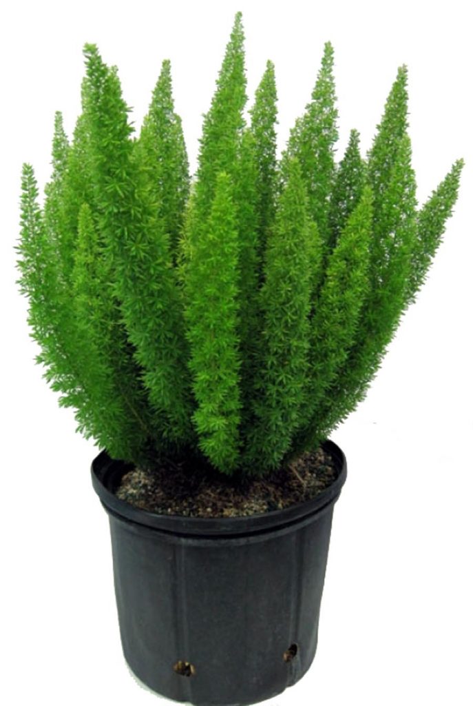 - Cirrus (Asparagus plumosus). Aussi connu sous le nom d'Asparagus setaceus. Plante ornementale aux pousses en dentelle. Un sous-arbrisseau fortement ramifié avec des branches centrales douces et légèrement incurvées et des phylloclades délicats.