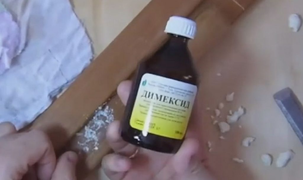 Cependant, quelle que soit la qualité du nettoyage, des marques caractéristiques resteront sur la surface et ne pourront pas être enlevées avec un couteau ou un solvant. À cette fin, un remède en pharmacie a été trouvé - le dimexide.