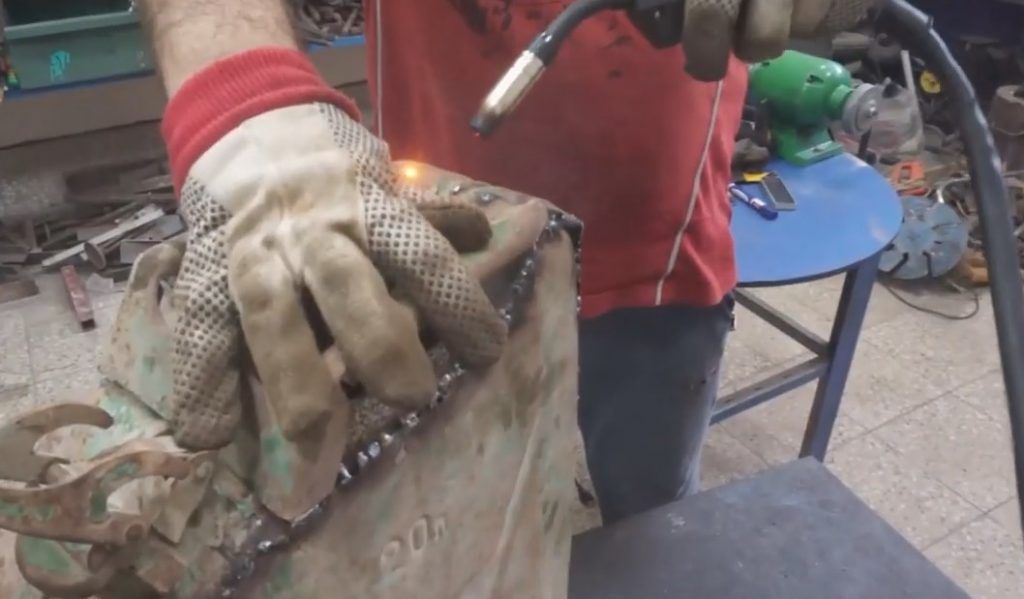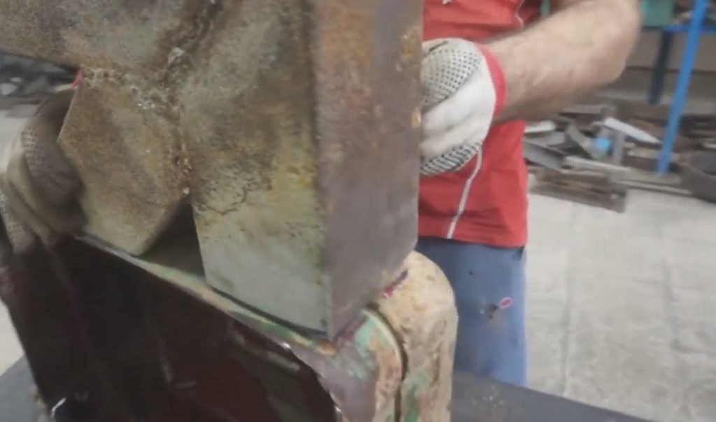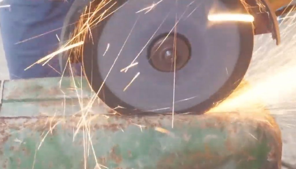 Après avoir attaché la pièce à la cartouche, il a fait un balisage et a scié l'excédent avec une meuleuse.