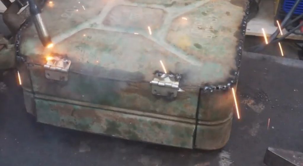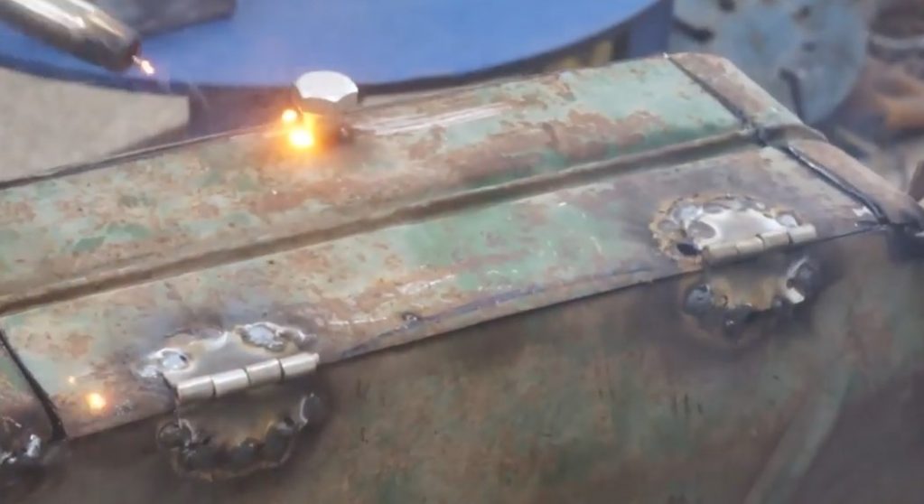 J'installe la porte sur le corps et fixe les charnières par soudure.