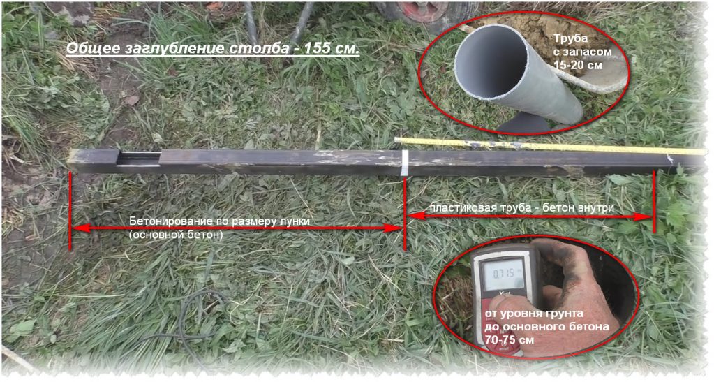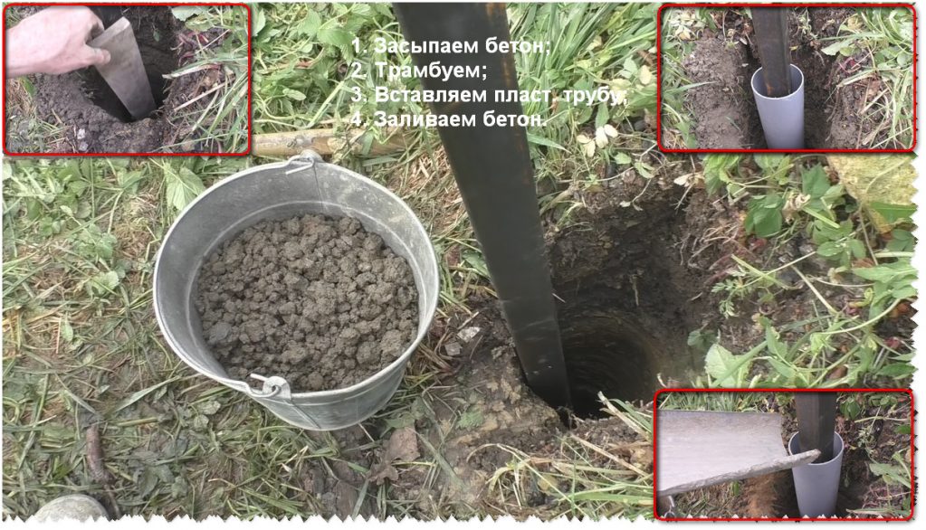 - Nous insérons un morceau de tuyau en plastique (diamètre 100 mm) de 80 à 85 cm de long et le centrons avec le poteau