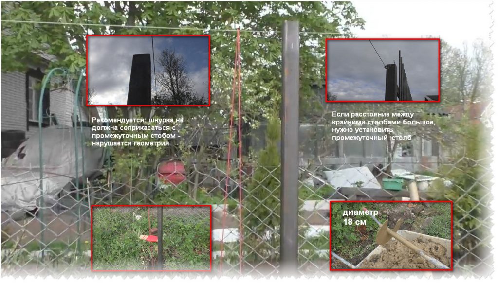 Si la distance entre les poteaux extrêmes est grande et que le lacet entre eux s'affaisse, vous devez installer des poteaux intermédiaires.