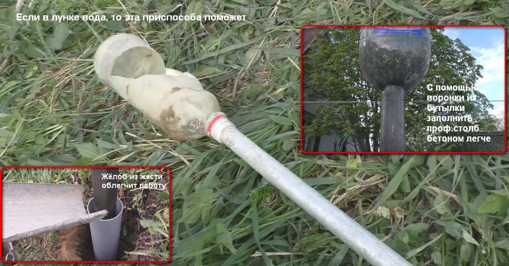 Pour ce faire, nous allons couler du béton à l'intérieur du pilier métallique. Il est pratique de le faire avec un entonnoir fait maison à partir d'une bouteille de cinq litres.
