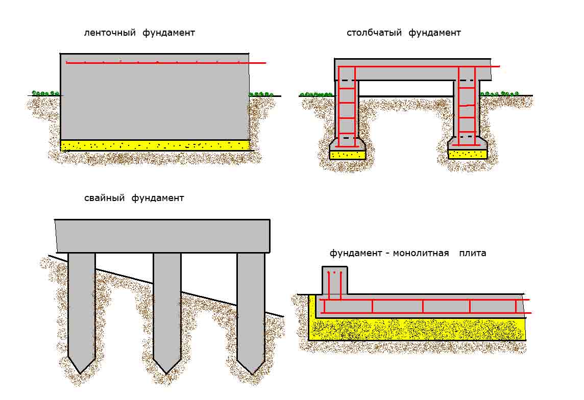 - ruban: avec creusement d'une fosse de fondation sous tous les murs porteurs, y compris intérieurs ; une telle boucle fermée assure la stabilité du bâtiment, protège contre les mouvements; une base en bande peu profonde ne peut être utilisée que sur des sols non rocheux qui ne sont pas sujets à de forts déplacements ; dans d'autres cas, les bâtiments sont installés sur des fondations profondes