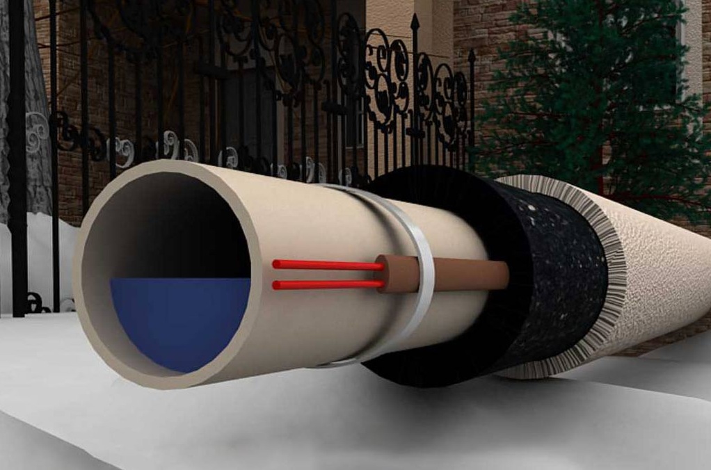 - Dans un système d'alimentation en eau, les matériaux chauffants peuvent être montés à la fois dans la cavité du tuyau et de l'extérieur. Le réglage interne du système de chauffage résistif est utilisé dans les tuyaux de petit diamètre. L'installation externe est réalisée sur des canalisations de grand diamètre, un câble chauffant autorégulateur est utilisé pour cela.