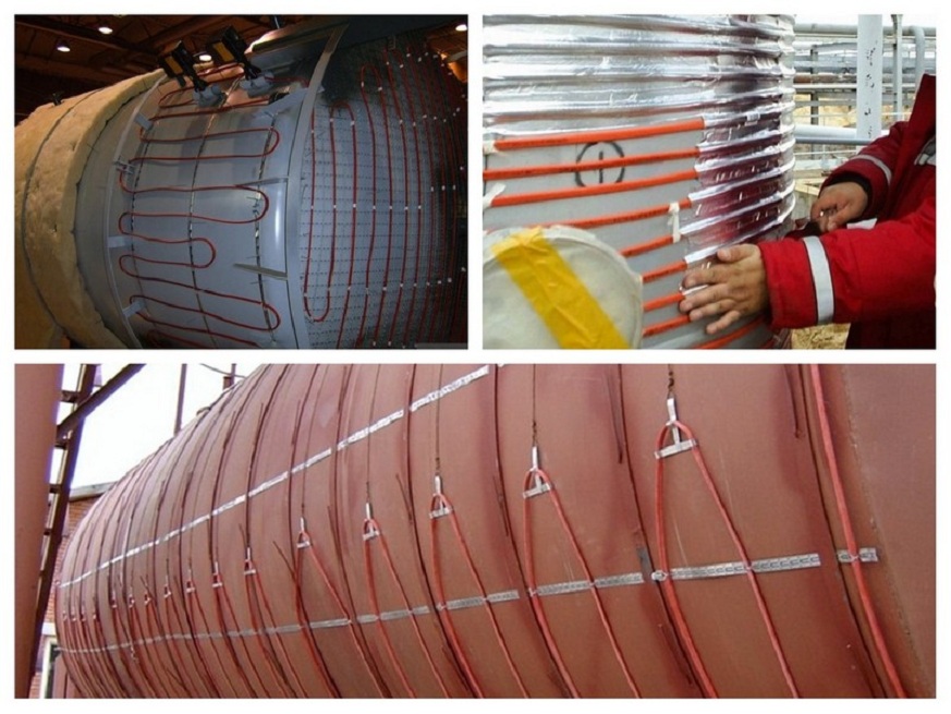 - Chauffage de divers conteneurs. Afin d'éviter le gel de divers liquides (produits pétroliers, chimiques, etc.), des éléments chauffants sont montés dans le réservoir de chauffage. Dans ce cas, il est possible d'utiliser à la fois des systèmes de chauffage résistifs et autorégulants.Une fonction importante est la prévention du gel et donc, selon les matériaux transportés, ils peuvent différer dans la température requise. Ainsi, + 40 ° C est suffisant pour le transport de produits pétroliers, et pour le transport et le stockage de bitume dans des conteneurs, une température de l'ordre de + 170 ° C est requise.