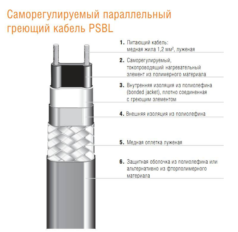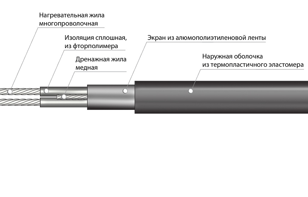 Le câble est constitué de plusieurs tronçons de longueurs différentes (de quelques centimètres à plusieurs centaines de mètres). Un noyau est installé à l'intérieur, dont les composants ont une résistance électrique élevée. Le dégagement de chaleur spécifique dépend de la valeur de résistance de l'alliage : avec une augmentation de la résistance, le dégagement de chaleur augmente.