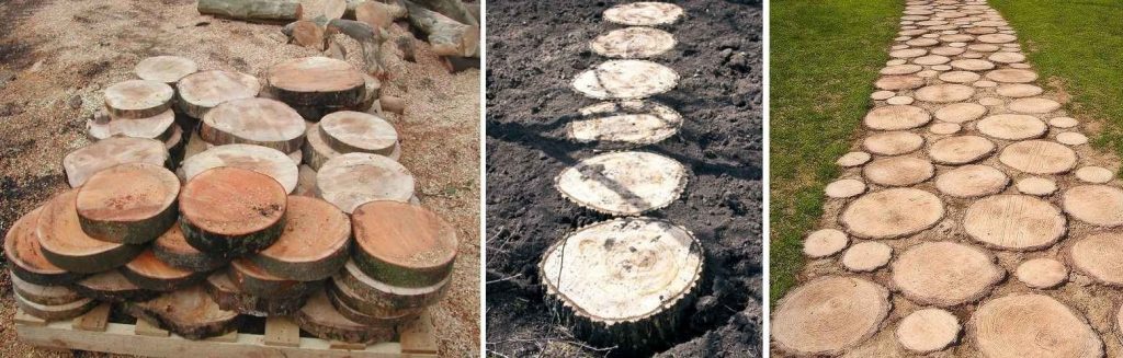Les idées avec un arbre pour décorer une maison d'été ne peuvent pas être comptées. Le reste du bois convient à l'allée de jardin d'origine.