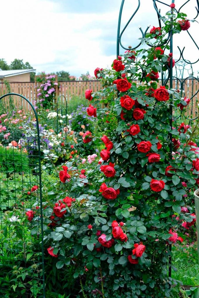 Habillez l'épouvantail à la dernière mode. Et c'est bon pour les plantes et c'est agréable à regarder. Les restes d'une tige métallique conviennent à la création d'une arche, à côté de laquelle vous plantez une escalade Rose ou lierre.