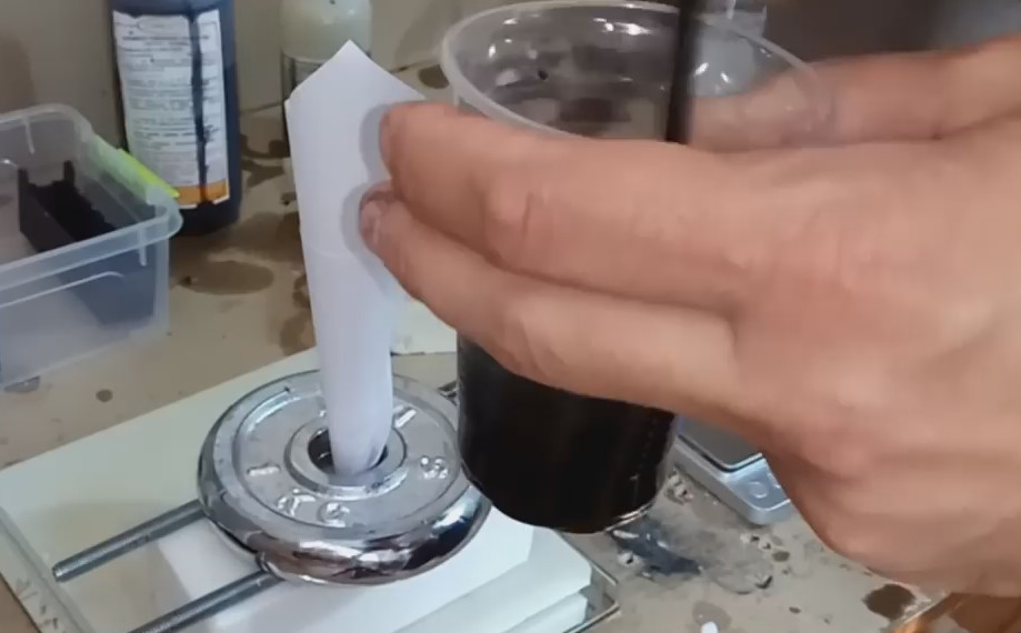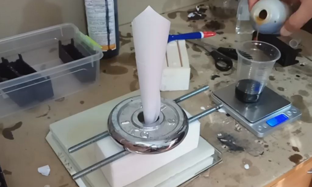 Nous fabriquons un entonnoir jetable en papier et l'insérons dans la carotte du moule.