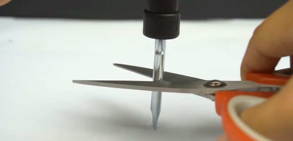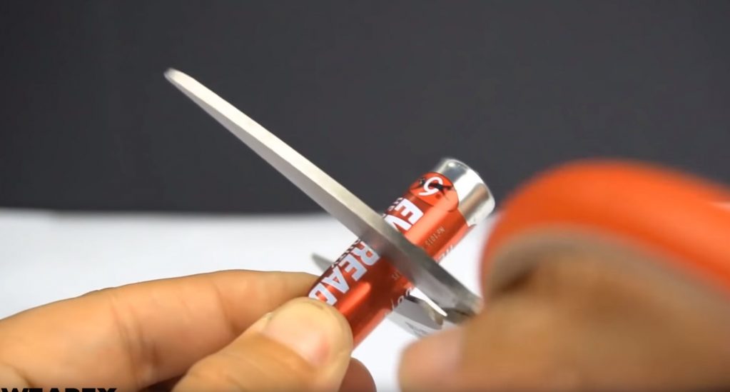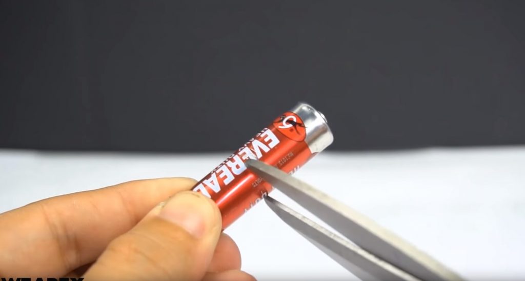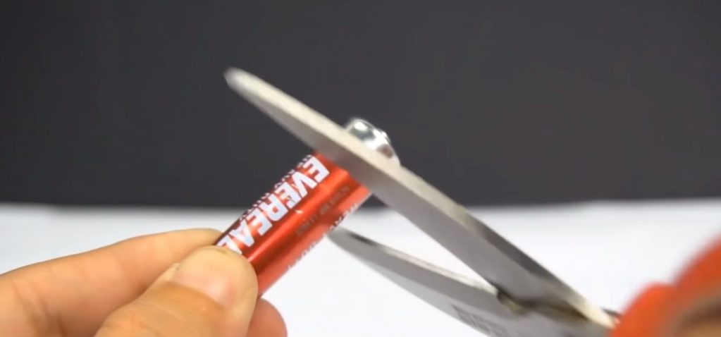 Pour cette méthode, vous aurez besoin d'une pile AA avec un boîtier en métal. Les mouvements, comme mentionné précédemment, sont effectués sur la longueur des ciseaux.
