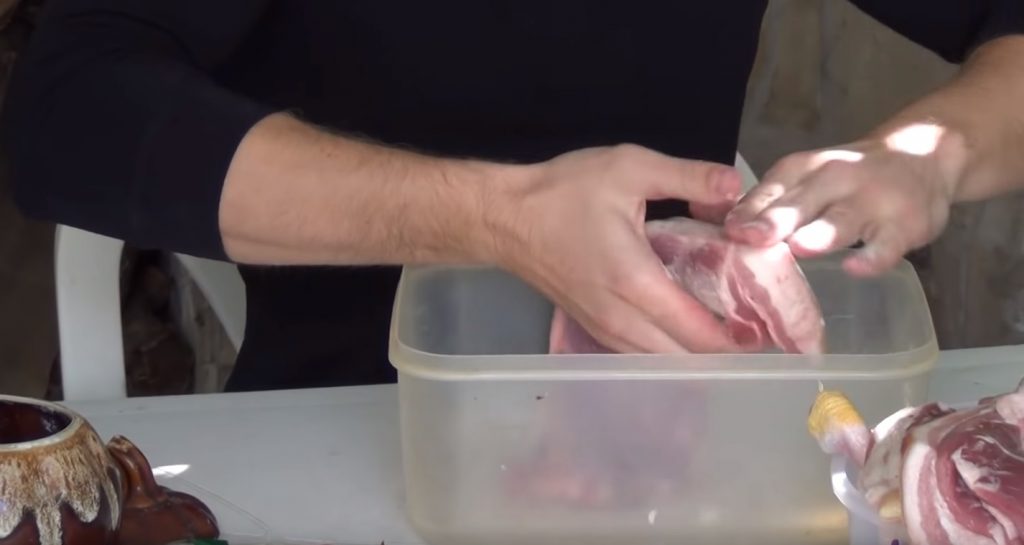 Par conséquent, le prétraitement de la viande est effectué uniquement avec du sel, du laurier et du poivre.