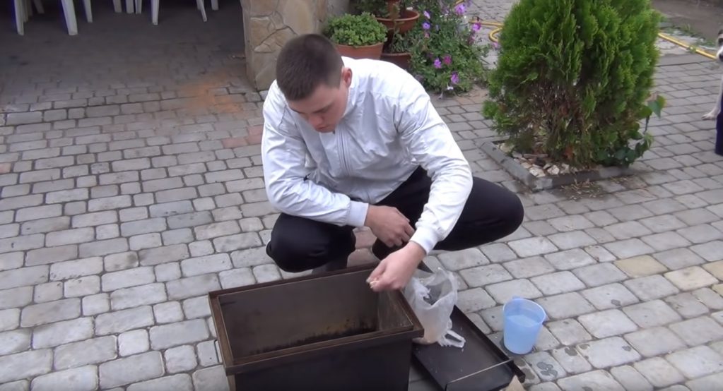 Pour que la fumée ne sorte pas du fumoir sous les bords du couvercle, de l'eau est versée dans les rainures autour de son périmètre, créant ainsi un joint d'eau