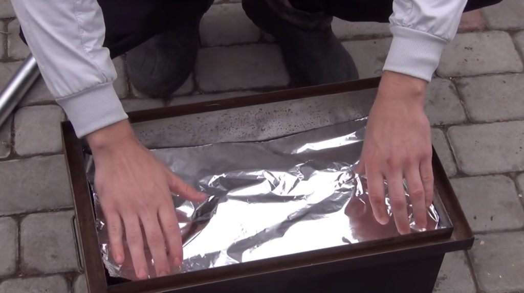 Pour faciliter le lavage du fumeur de la graisse, il est nécessaire de mettre du papier d'aluminium sur une plaque à pâtisserie.