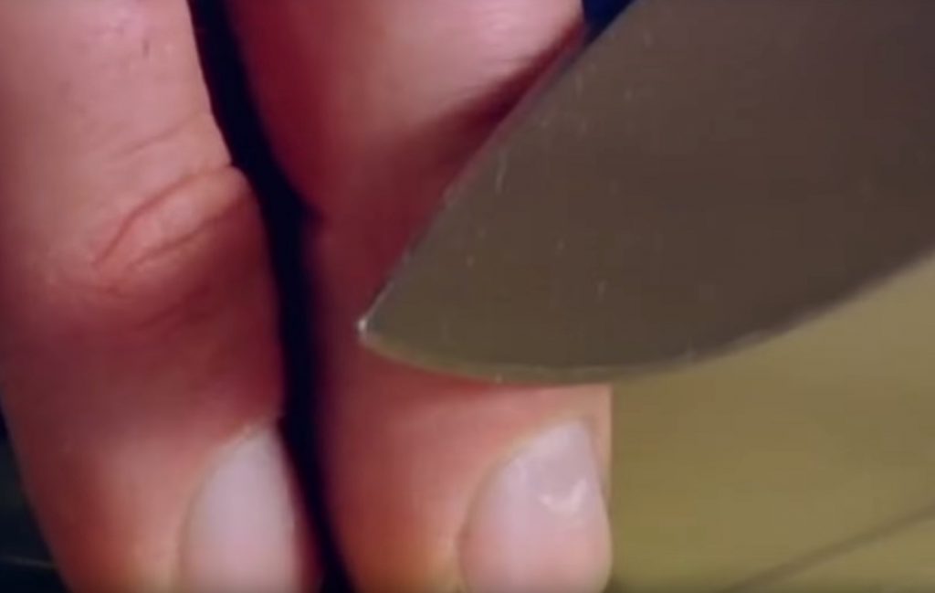 Un point important dans le processus de coupe est la position correcte du couteau et des doigts de la main opposée, ce qui limitera le mouvement du couteau dans un plan horizontal.
