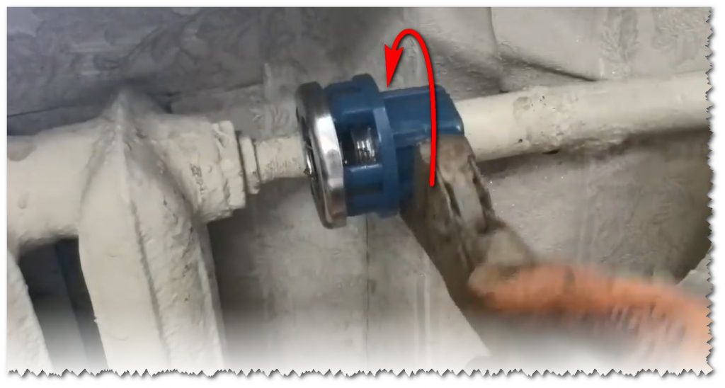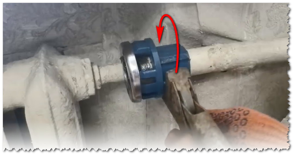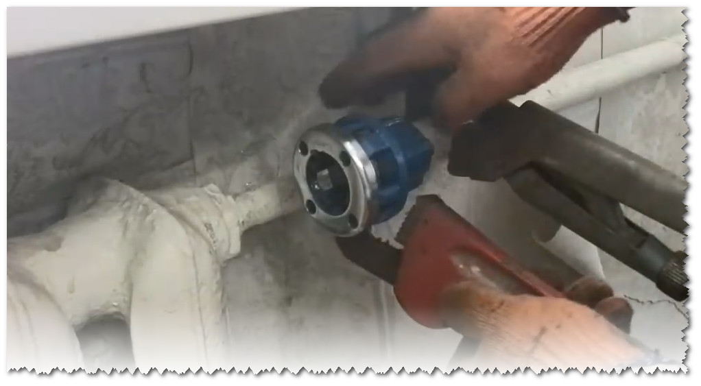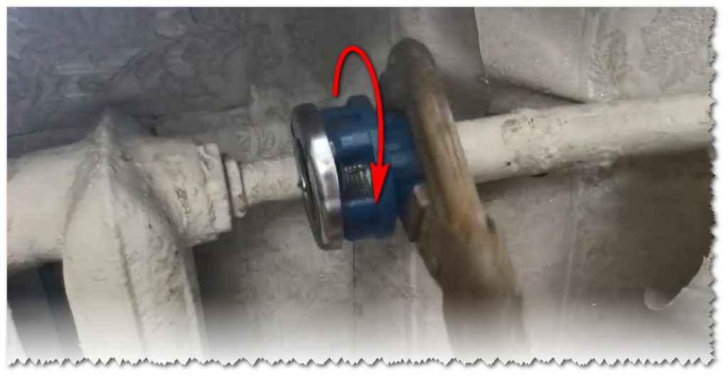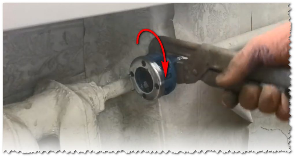 Nous plaçons la pince sur le tuyau comme indiqué sur la figure. Si le tuyau est vieux et que l'on soupçonne qu'il est pourri, il est préférable d'utiliser deux clés à gaz. L'un tiendra le tuyau en position statique et l'autre tournera le klupp.