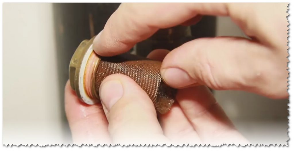Nous démontons le filtre - retirons le maillage cylindrique de l'écrou.