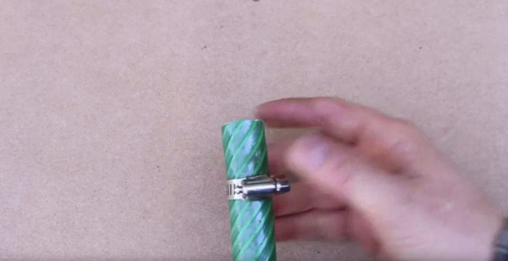 Ensuite, une pince est placée à l'extrémité du tuyau.
