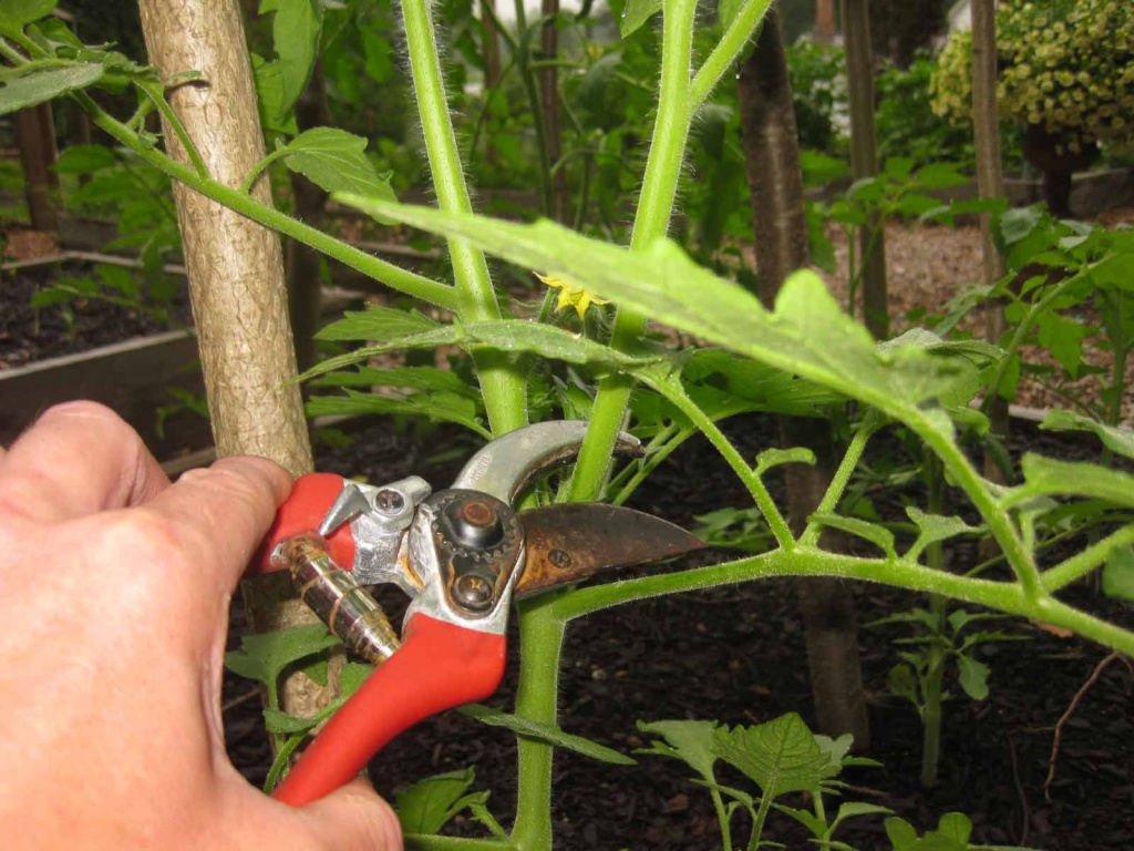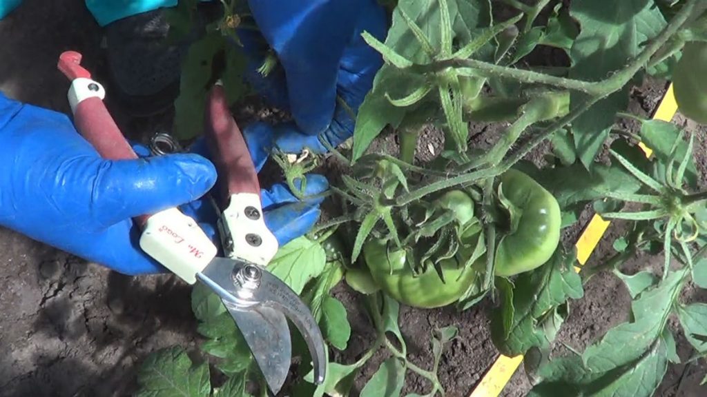 Pour se protéger contre une lourde charge de travail, les pousses secondaires sur la tige de la tomate sont coupées. De ce fait, la taille du fruit sera plus grande et la tige avec feuillage ne nécessitera pas de traitement fréquent contre la pourriture, les insectes.