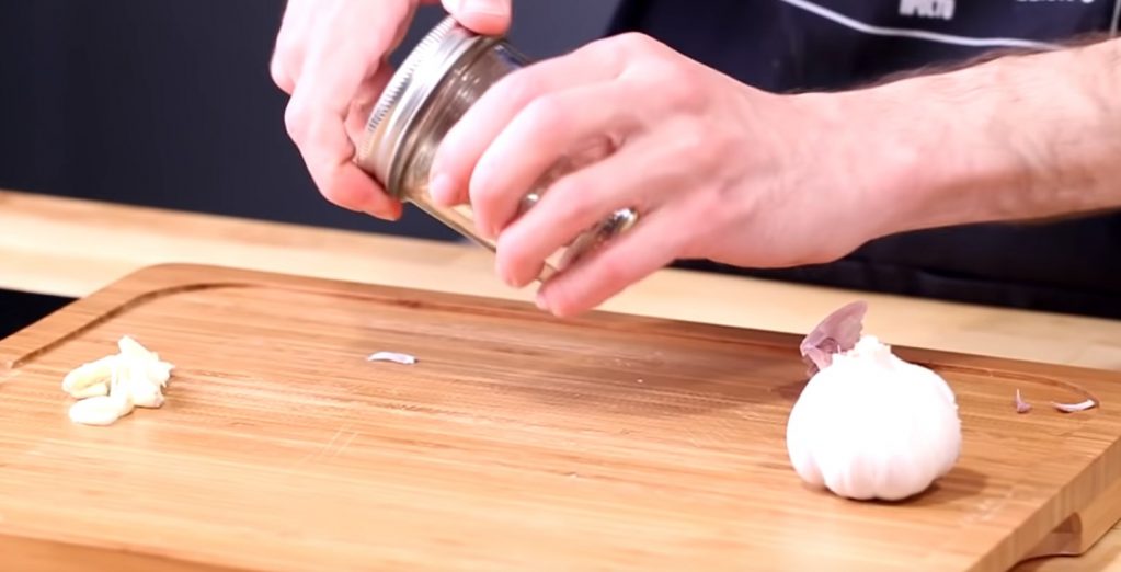 Une fois le pot avec une gousse d'ail fermé, ils commencent à le secouer vigoureusement d'un côté à l'autre. L'amplitude des mouvements est d'environ 20 à 30 cm et la fréquence est de 2 à 3 fois par seconde, c'est-à-dire que les secousses seront assez énergiques.