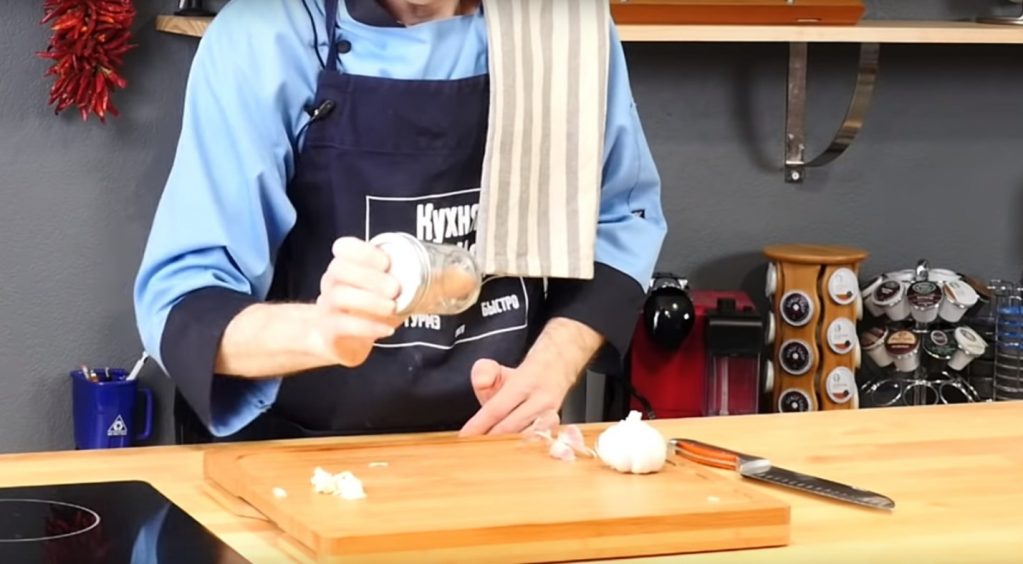 Tout d'abord, une gousse d'ail est placée sur le plateau.