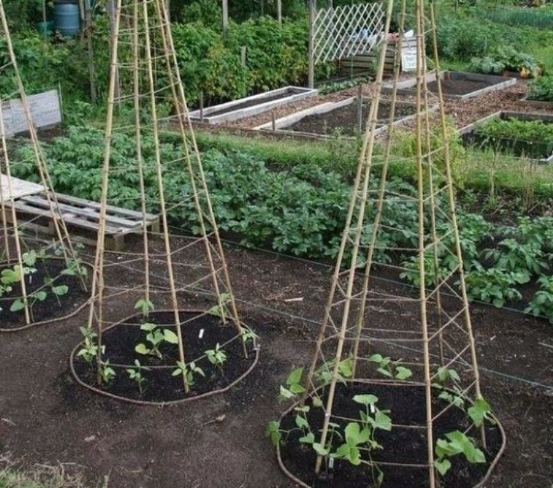 En général, cela ressemble à la méthode précédente, mais avec une légère différence.Pour chaque buisson, une sorte de structure pyramidale est construite, rappelant un wigwam indien. Vous pouvez créer une telle pyramide à partir de n'importe quel moyen improvisé.