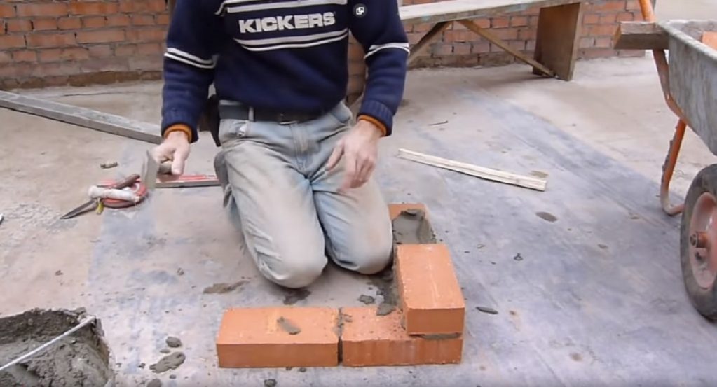 Ensuite, la première brique de la deuxième rangée est installée sur le mortier. C'est ce qu'on appelle une horloge, car la deuxième rangée s'alignera (s'enroulera) le long de celle-ci.