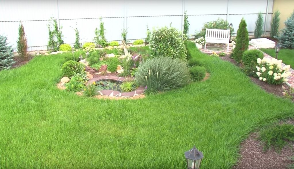 Cependant, il ne faut pas penser que la présence d'une pelouse dans le jardin doit nécessairement se faire au détriment de tout autre plaisir de conception. Au contraire, divers groupes décoratifs, tels que parterres de fleurs, jardins de rocaille et les réservoirs artificiels sur le fond de la pelouse semblent beaucoup plus attrayants que sans elle.