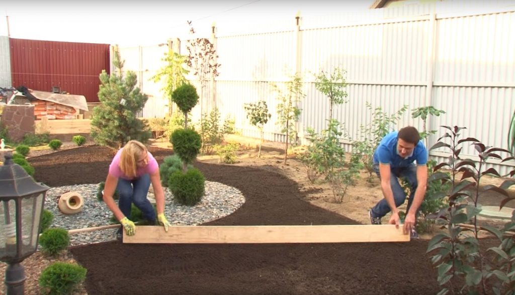 Le moyen le plus simple de niveler la surface de la pelouse - c'est l'utilisation d'une planche de 2-3 mètres de long.
