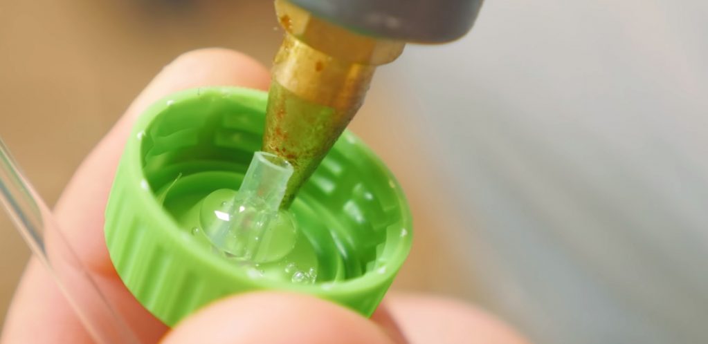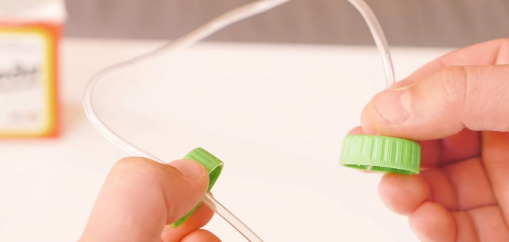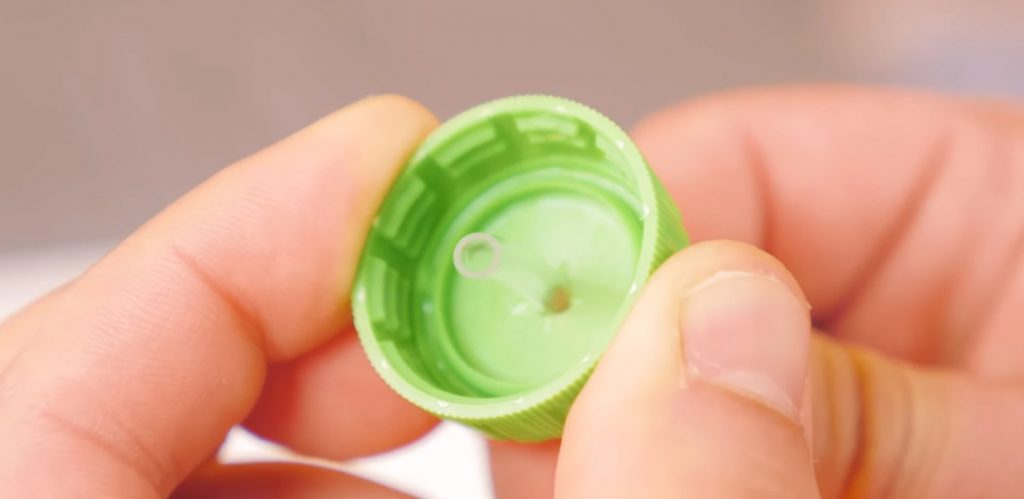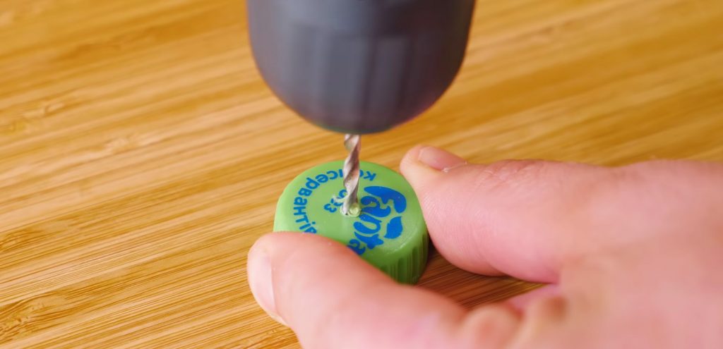 À l'aide d'une perceuse, des trous doivent être percés dans les couvercles avec un diamètre égal au diamètre du tube du compte-gouttes.