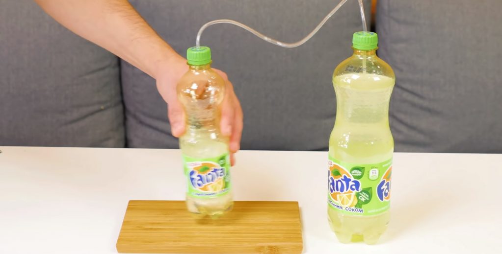 Après un certain temps, la pression dans les deux bouteilles dépassera plusieurs atmosphères et le gaz commencera à se dissoudre activement dans la limonade.