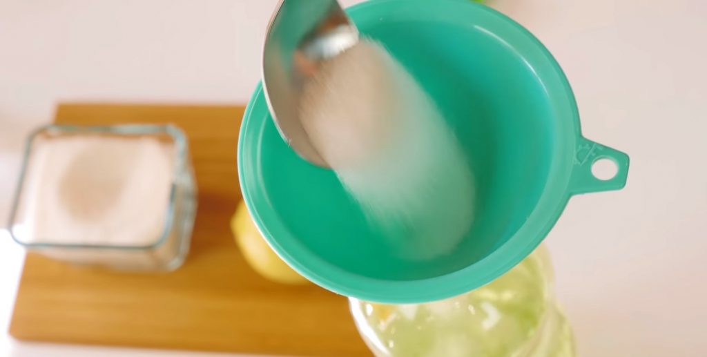 Ensuite, à l'aide d'un entonnoir, 3-4 c. cuillères de sucre.