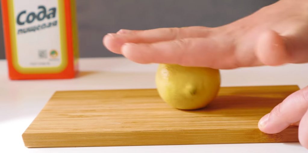 Ensuite, il doit être coupé avec un couteau en deux moitiés. Après cela, les deux moitiés du citron sont pressées dans un grand récipient.
