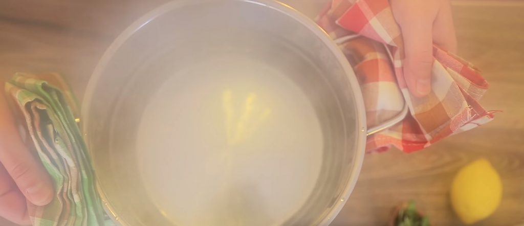 L'eau doit être bouillie. Dès que l'ébullition commence, retirez la casserole du feu.