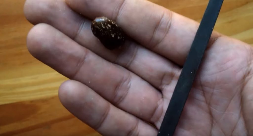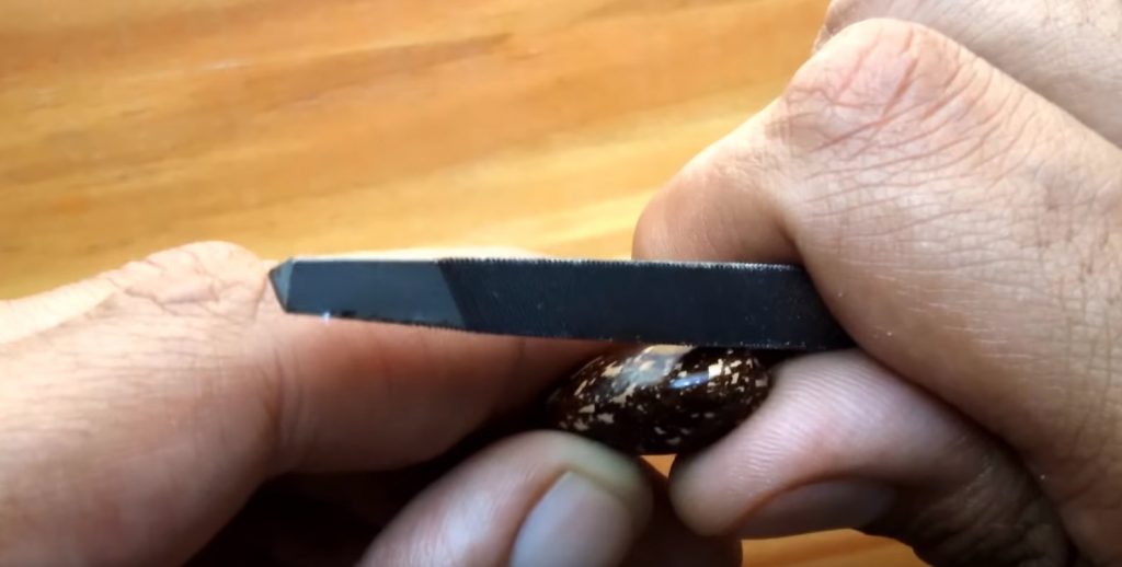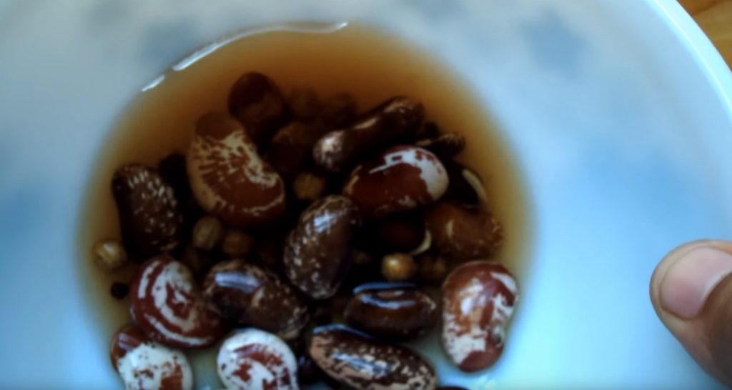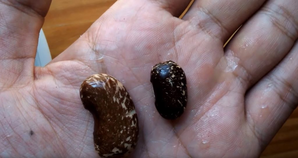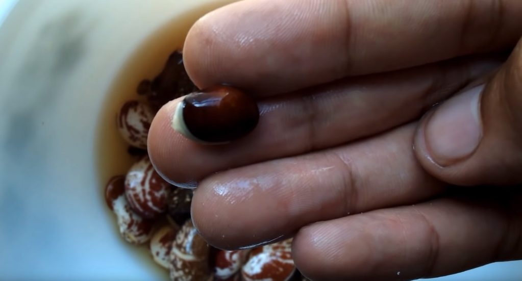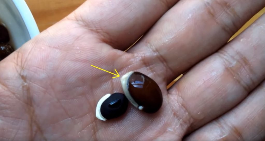 La graine doit être bien serrée dans la main et une petite incision doit être faite dans sa coquille épaisse avec une lime.