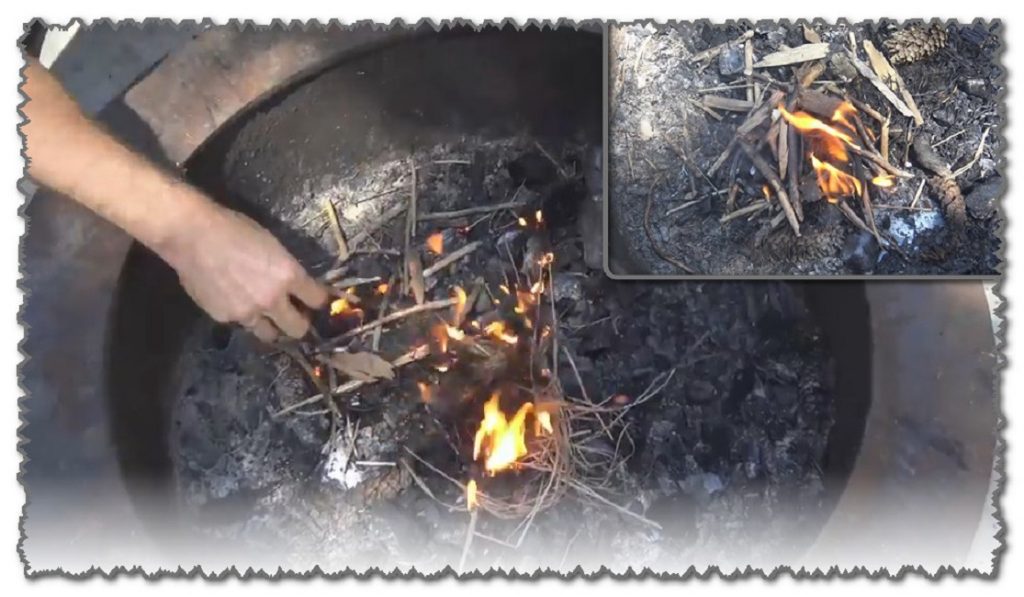 À ce stade, obtenir un feu ouvert ne fonctionnera pas. Notre objectif est de former un petit charbon à partir duquel nous ferons un feu.