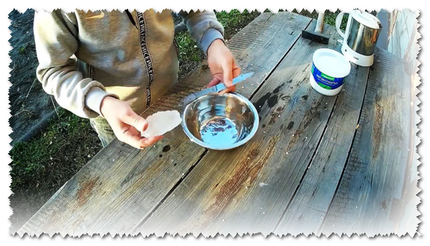 Pour ce faire, nous avons besoin d'une lame en métal, d'eau chaude et de Polymorphus. Pour accélérer le processus de solidification du plastique, vous aurez également besoin d'un récipient d'eau froide.