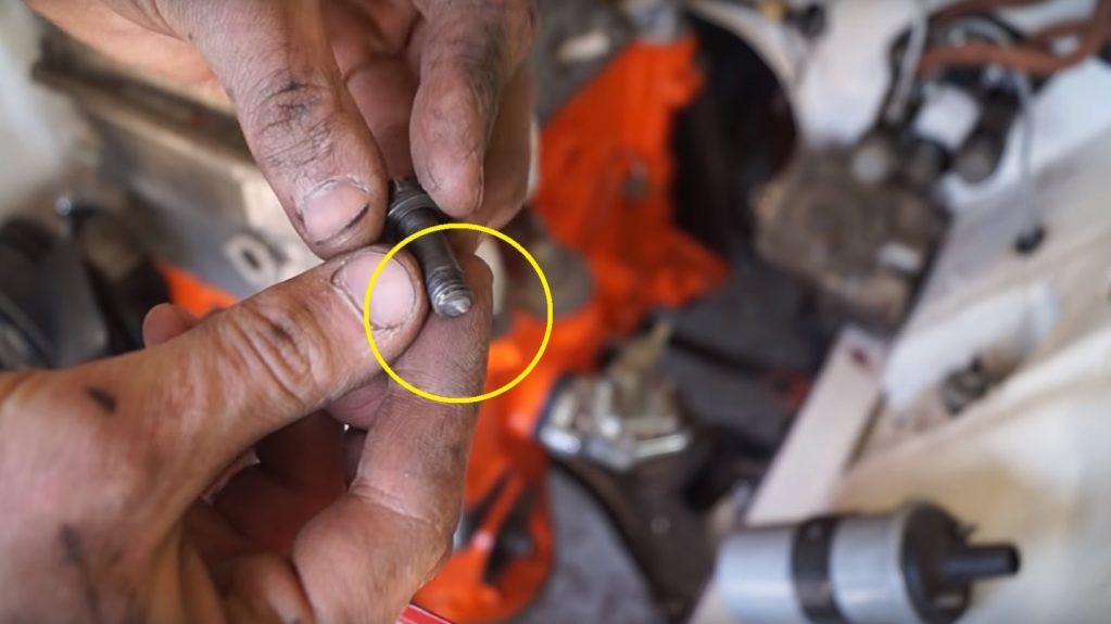 Si vous fixez un boulon au moteur, vous pouvez voir que sa défaillance s'est produite exactement au-dessus du bloc-cylindres, c'est-à-dire qu'il y a des restes de filetage dans le bloc et dans la tête