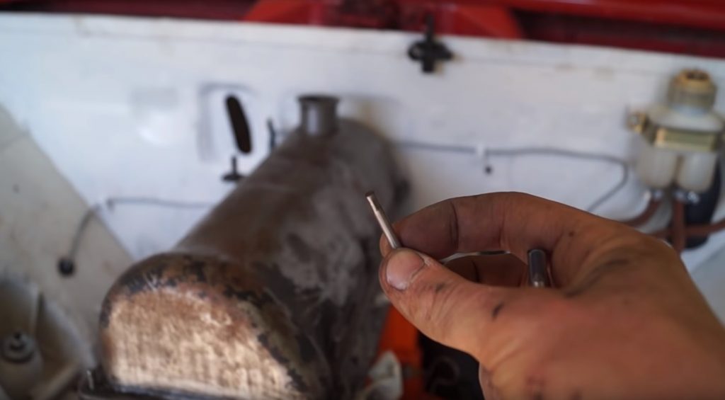 C'est-à-dire que même le démontage de toute la structure ne pouvait pas enlever les restes du boulon. La seule solution possible dans cette situation est d'extraire le fil cassé d'une autre manière.