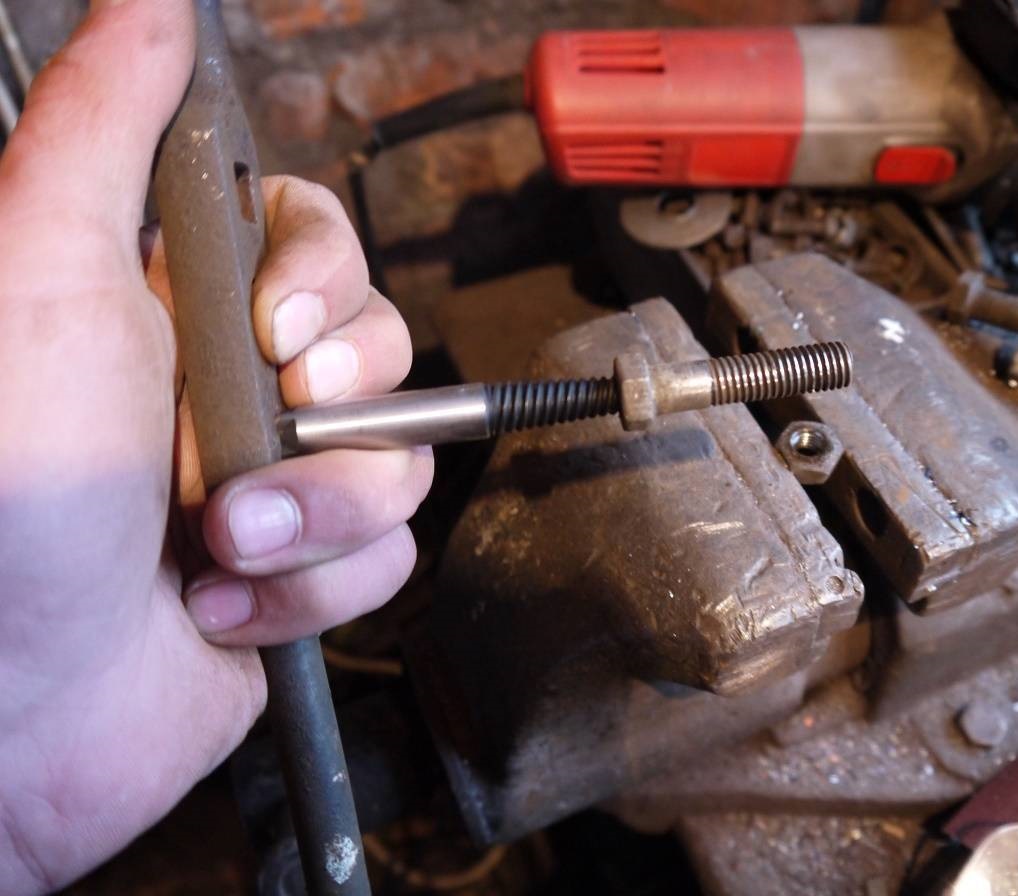 Ensuite, l'extracteur est vissé dans un boulon et y tourne jusqu'à ce qu'il s'arrête.