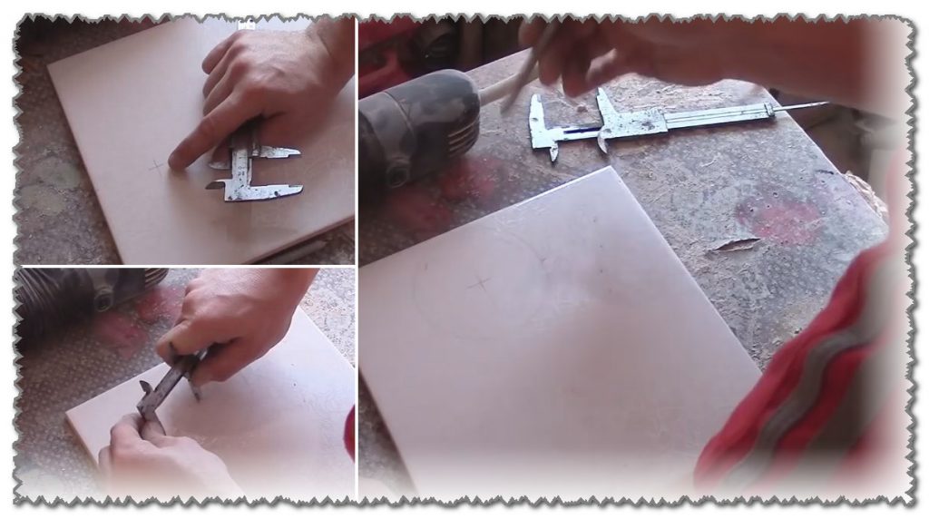 Nous allons faire un trou pour un tuyau de 40 mm. Dans ce cas, la tâche est compliquée par le fait que le trou doit être percé à proximité du bord du carreau - un écaillage est possible.