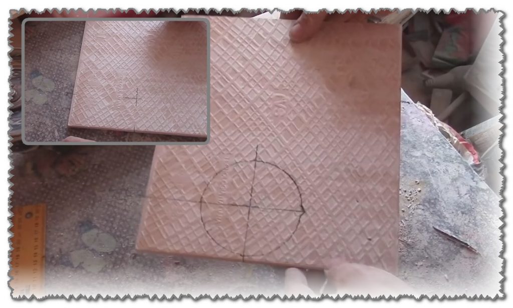 L'essence de la méthode consiste à effectuer plusieurs coupes à l'intérieur du contour des marques appliquées sur la face avant du carreau.. Ensuite, retournez le carreau et faites de même, mais uniquement perpendiculairement aux coupes sur la face avant.