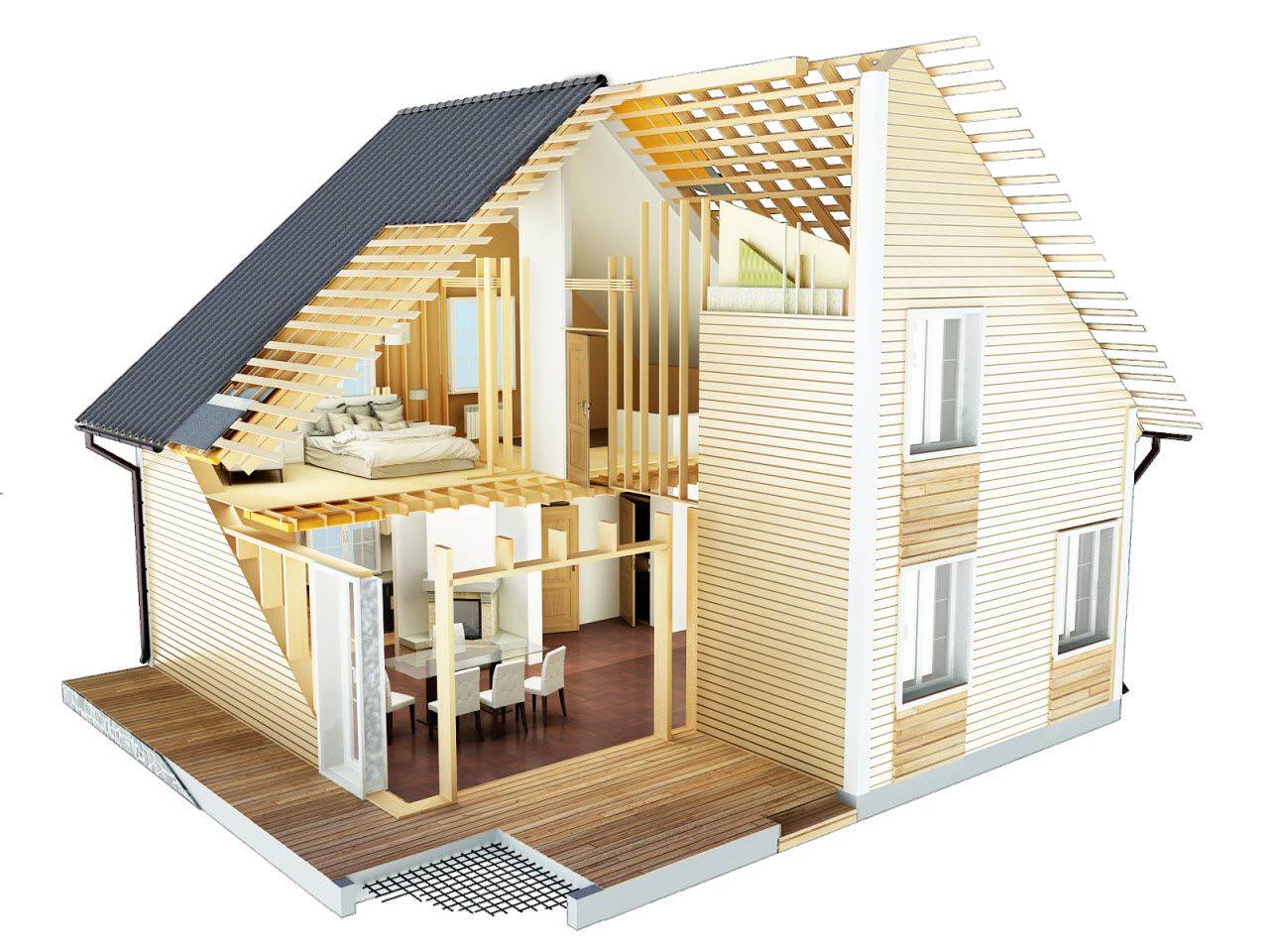Le toit d'une maison à ossature n'est pas différent du toit de tout autre bâtiment, mais sa fabrication est simplifiée. Dans la fabrication du toit, des techniques standard sont utilisées et il est impossible de s'en écarter.