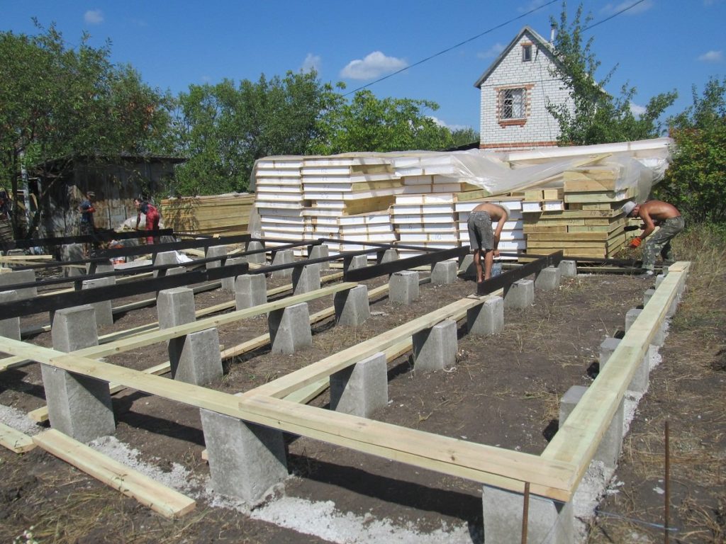 Les petits bâtiments pour une famille de 4 personnes sont mieux construits sur des fondations en colonnes. Une telle fondation est constituée de tuyaux en amiante-ciment, approfondis de 80 cm et disposés en plusieurs rangées à une distance maximale de 90 cm les unes des autres. Leur nombre moyen par maison est de 120 à 150 pièces. L'espace entre eux est recouvert de sable ou de gravier. Après bourrage, toute la structure est coulée avec du béton léger ou du mortier de ciment.