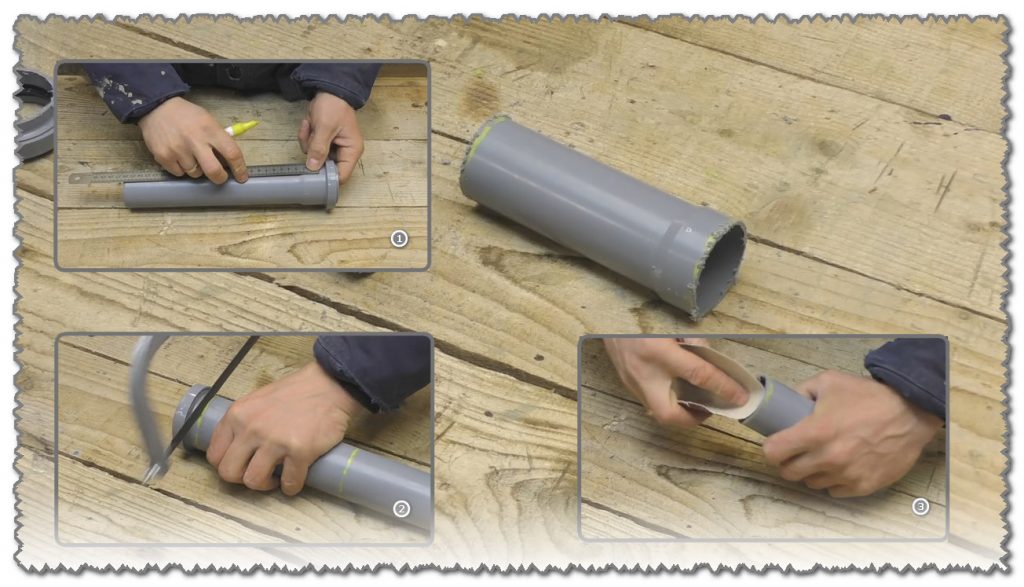 Les diamètres des trous pour le tuyau sont différents, nous les marquons donc avec le tuyau en PVC préparé.
