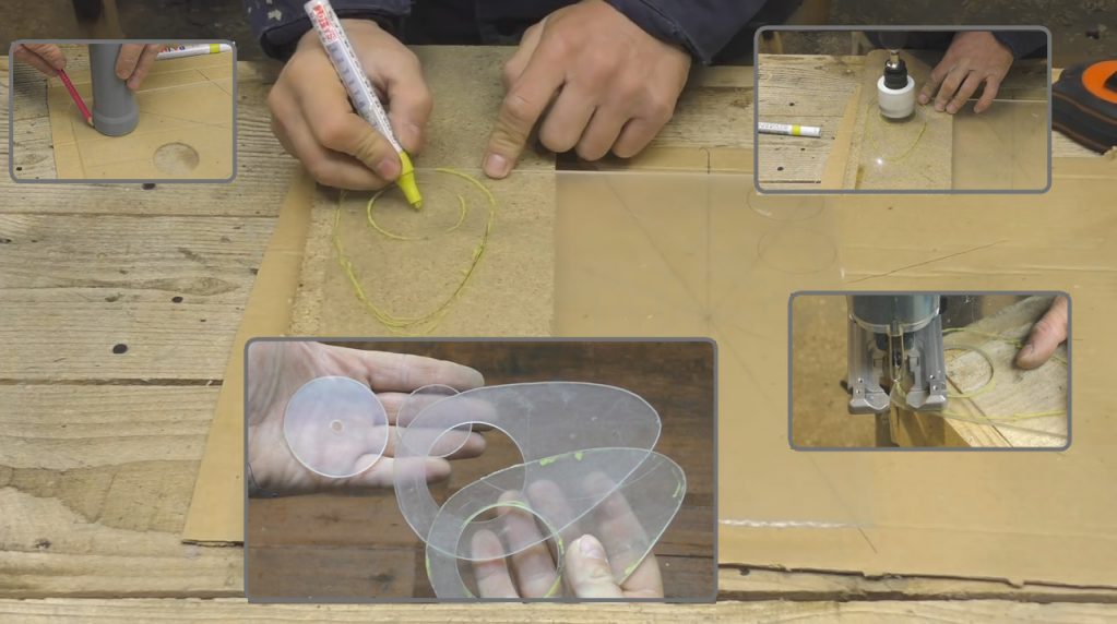Selon le marquage, nous faisons du sciage, pour cela nous utilisons une scie sauteuse et une perceuse avec une couronne. Nous écorchons des blancs.