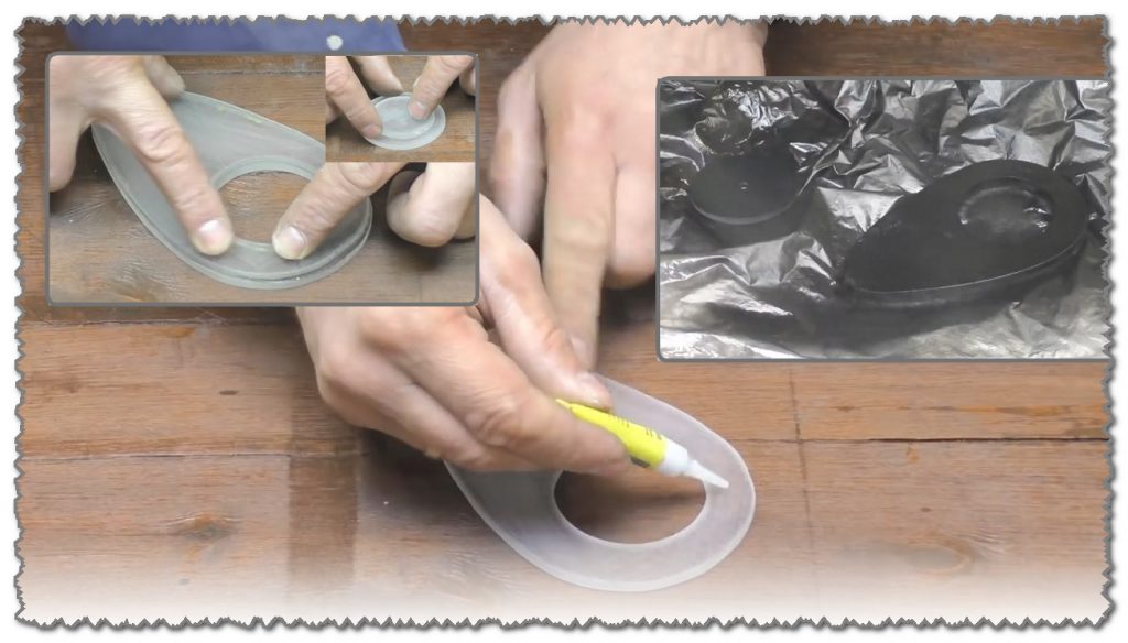 Pour ce faire, sur une feuille de diélectrique, préalablement préparée avec un tuyau (bobine), nous marquons l'endroit où la poignée est fixée. Nous dessinons également la forme de la future poignée sous n'importe quelle forme. Ces flans ont besoin de 2 pièces.