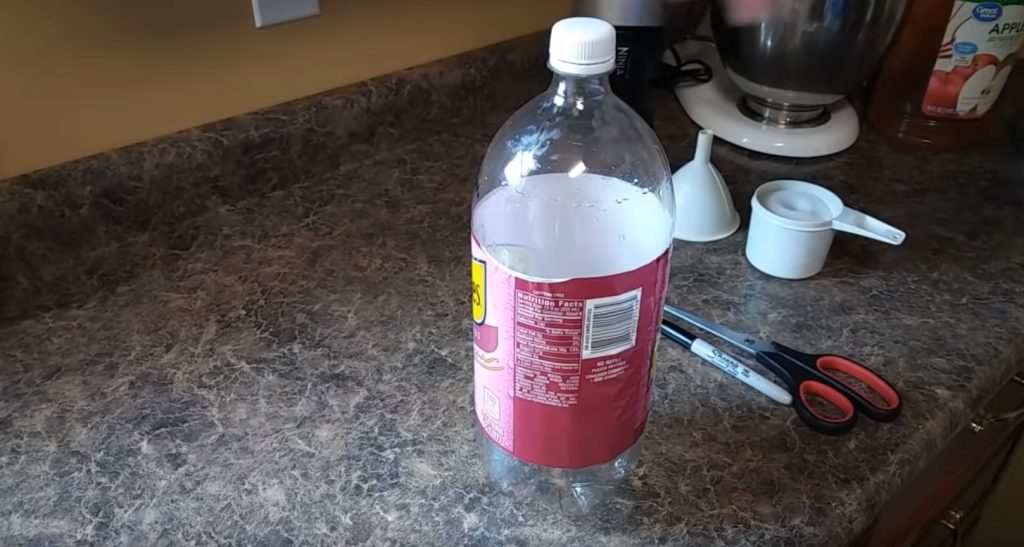 Après cela, dévissez le bouchon de la bouteille et, en tournant la partie supérieure, insérez-le dans le fond.