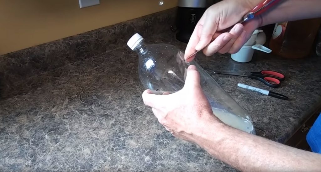 Dans le haut coupé de la bouteille, 3 à 5 trous supplémentaires sont faits avec un couteau pour une meilleure répartition de l'odeur.