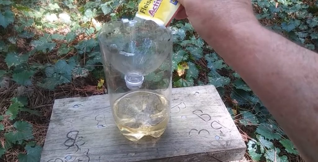 De plus, il est recommandé de fabriquer des appâts à guêpes directement dans la bouteille. Bien sûr, cela peut être fait plus tard, mais cela nécessitera un conteneur séparé. Si vous ne voulez pas fabriquer l'appât tout de suite, vous pouvez sauter cette étape.